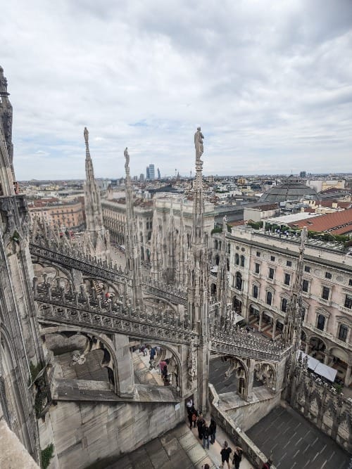 Deb and I walked through the old section of the city and saw one of the many churches that dotted the old city landscape of Milano. We slowly walked around Duomo di Milano, looking at the architecture and statues. Ancient marble gutters that spat out the rainwater. The twisted faces of gargoyles grinning and sneering as they looked upon us in mockery with centuries-old soulless eyes. Guarding an archaic institution that had at one time possibly served a purpose. Still, it was now seen as history, the meaning of its service lost with each passing century, abridged to a simplified art landscape.