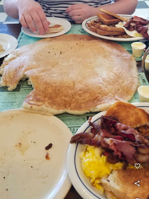 On occasion, an out-of-towner would come in and order pancakes. Of course, not knowing any better, they would at times order a stack. Oh, to see the expression on their faces as the food came out. A hush would fall on the room, the screech of chair legs as people turned, their eyes following the stack of pancakes to the even more bewildered and shocked customer. Inevitably, someone from a nearby table would ask the question, 'Not from around here, huh?' Everyone would break out laughing, not out of antagonizing but simply commiserating with the situation. Years later, I remember listening to Paul Harvey on the radio he mentioned a little hole- in- the- wall mom and pop cafe on Old Black Canyon Highway. Immediately, I knew the place he was talking about and those gigantic pancakes.