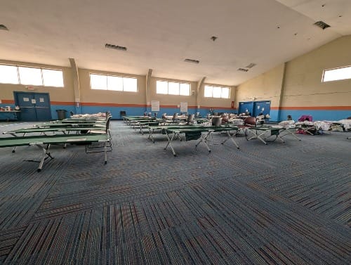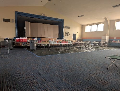 We made our way in and were greeted by three people from Red Cross. Lori, the person in charge, introduced herself and along with Sherry and Von. They explained that the shelter has just opened and currently there were only a couple of people. Lori began to give us a tour of the facility along with explaining that it had just been opened and thus it was still being established. The way the beds were set up, single men, single women and families. Unbeknownst to us, the shelter would be called home to families including one that had eleven children with one on the way.