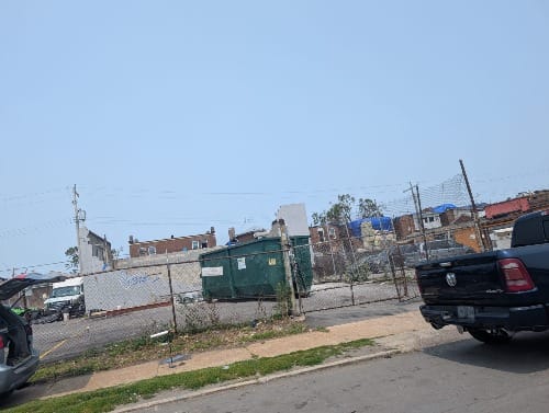 We pulled up to the intersection of Clarence Ave and Natural Bridge Ave. A large gas station sat to the right of us. It took a minute to register with what I was seeing. Not only was the gas station destroyed, but there was a semi-trailer lying on its side.